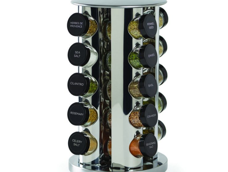 Rely less on expensive takeout and restaurant meals by cooking creatively with the 20 USA grown premium spices included in this attractive countertop rotating spice organizer.