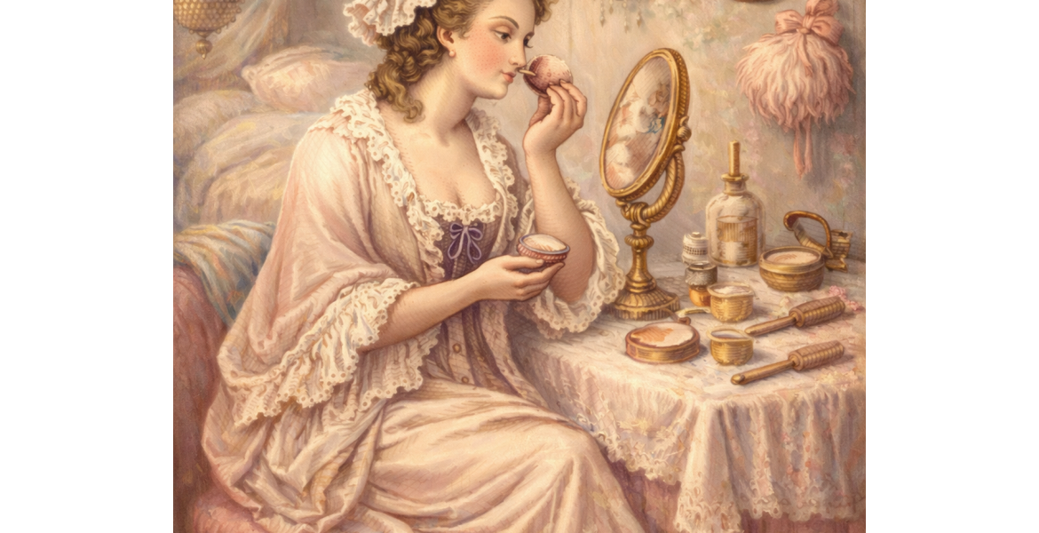 Imagine sitting on a velvet cushion, perched at your vanity, dressed in a silken dressing gown. You swipe on a hint of petal-pink lipstick, then apply fragrant powder with a cotton puff. This space is all your own, hidden away from the rigors of everyday life for an 18th century lady.