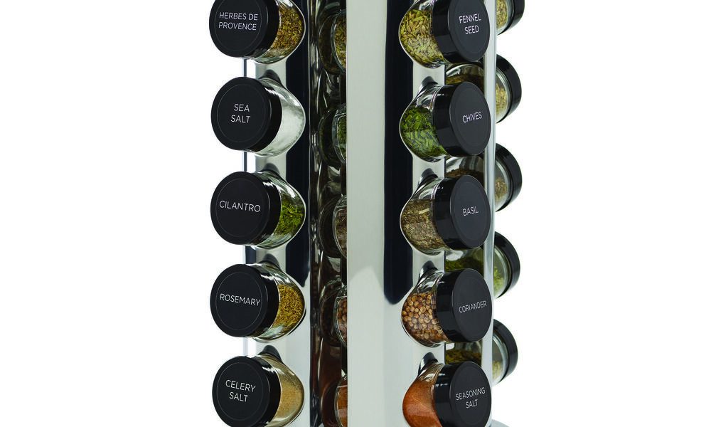Rely less on expensive takeout and restaurant meals by cooking creatively with the 20 USA grown premium spices included in this attractive countertop rotating spice organizer.