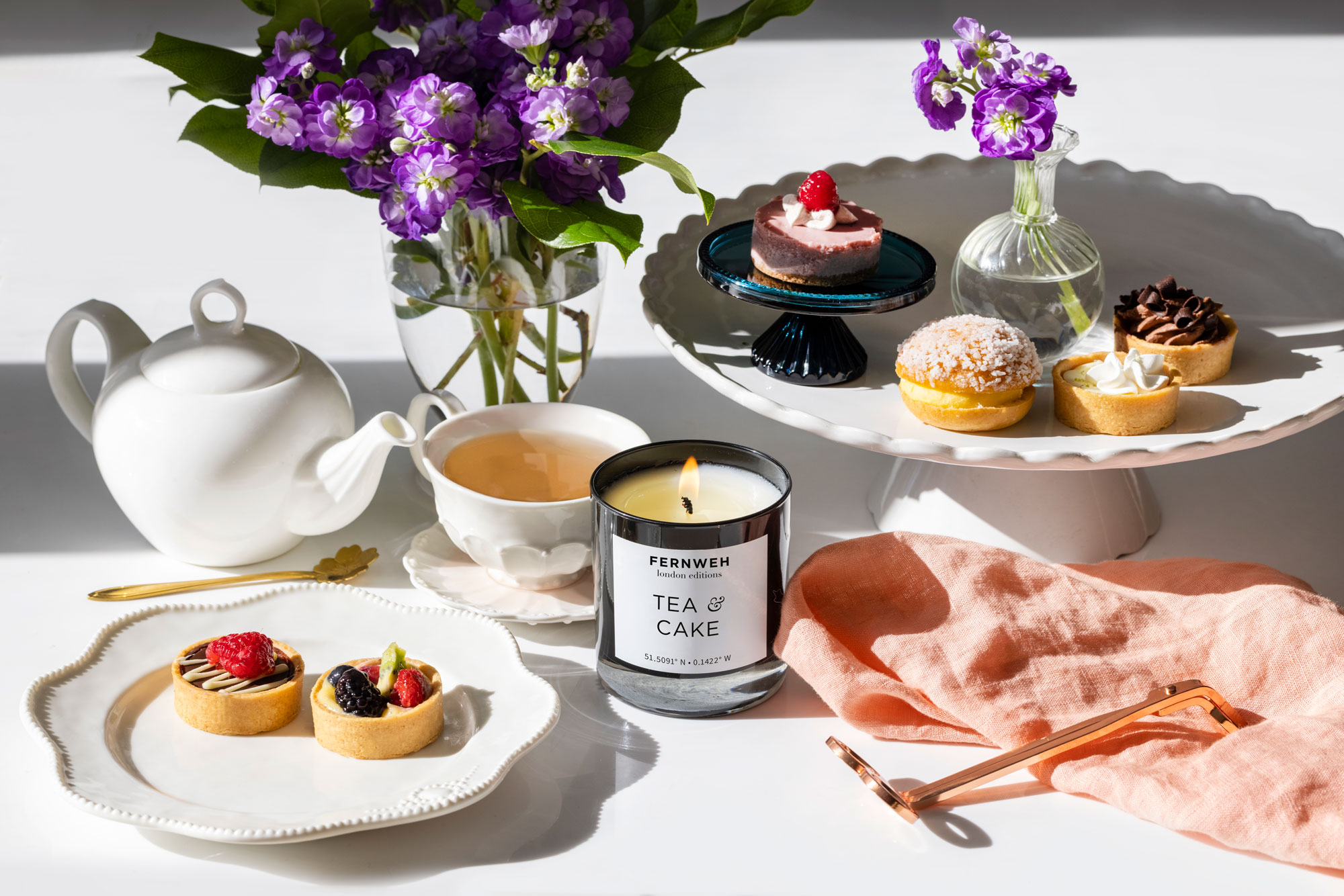 One of the easiest ways to curate the vibes of your dinner party is scent. You can light a candle, put out a reed diffuser, or set out a room spray—just make sure that the aroma you choose matches the mood you want to create. For example, this Roaring Fireplace candle from Fernweh Editions creates a warm ambiance, while Tea & Cake is a sweeter and lighter energy. I find that it’s most effective to light a candle once the aromas of food waft away and dinner winds down. Set out a simple dessert, choose your scent of choice, and let the food coma conversation flow.