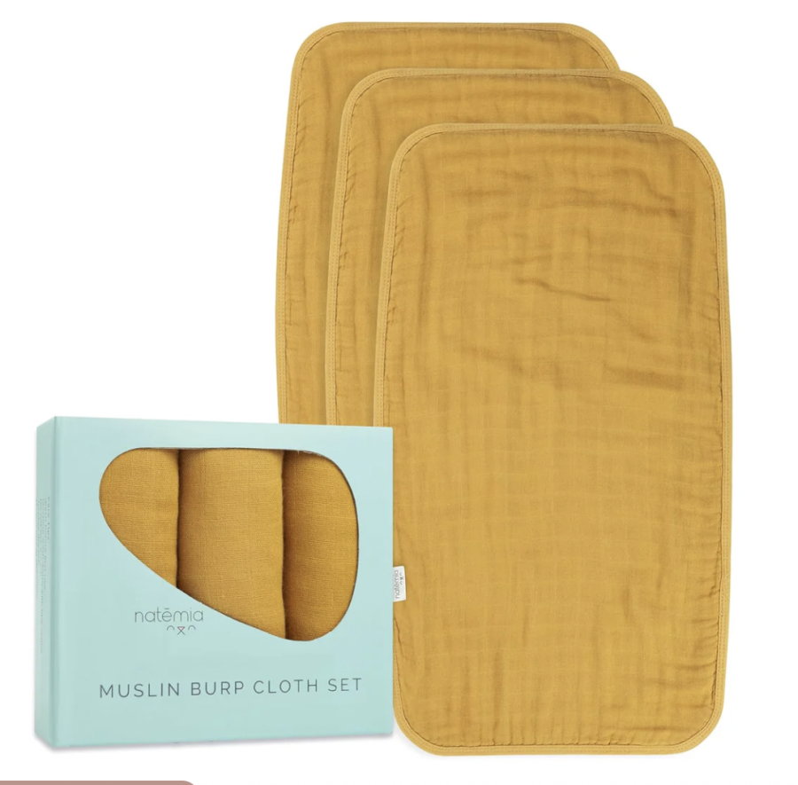 Babies burp up, and they do sometimes burp up copiously…you want this Natemia Burp Cloth Set. These have six-layers of ultra-absorbent, incredibly soft muslin for gentle cleanup. These can be machine washed in warm waters with like colors, and they’re a veritable lifesaver for new parents!