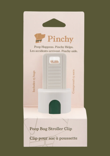 City moms who walk their dogs with their baby in a stroller know how ridiculously inconvenient it is to scoop poop and tote it while pushing a stroller and carrying a leash…so one inventive mom creatively solved the problem with The Pinchy Clip. The clip includes 15 bags, so you can easily clip your dog’s poop bag to your stroller. You’ll never have to tote a poop bag around again or place it in your stroller until you can find a wastebasket. It attaches securely to most stroller baskets in seconds, and is designed to keep walks simple, convenient, and stress-free for dogs and humans alike. Small things like this can make an enormous difference.