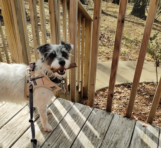 “Champ is a high-energy and very vocal tornado of a dog. People are always astonished by his loud bark because it sounds as if it should be coming from a dog twice his size. Two-year-old Champ embarks on long hikes along the Butterfly Trail at Smith River Greenway and enjoys visiting Freedom Park in Eden, North Carolina. His favorite companion is a Yorkie named Cheyenne.”