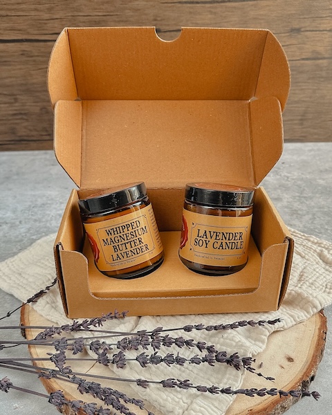 With this Lavender-scented combo, you get the best of both. Imagine keepsake Whipped Magnesium Butter crafted with the finest, plant-based ingredients. Indulge in decadent hydration combining the therapeutic benefits of magnesium with the calming properties of lavender. Enriched with 150mg of magnesium per teaspoon, it’s your ticket to supple, regenerated skin. Added magnesium reduces stress, anxiety and symptoms of PMS while soothing sore muscles and easing joint pain. Free of harmful chemicals and additives, Whipped Magnesium Butter supports collagen regeneration, softens fine lines and enhances beauty sleep. Get yours today in the Lavender Classic Collection and you’ll also receive a heavenly lavender candle made with 100% natural soy wax and pure essential oils. Indulge in serenity with up to twenty hours of eco-friendly, calming aromatherapy in one candle.