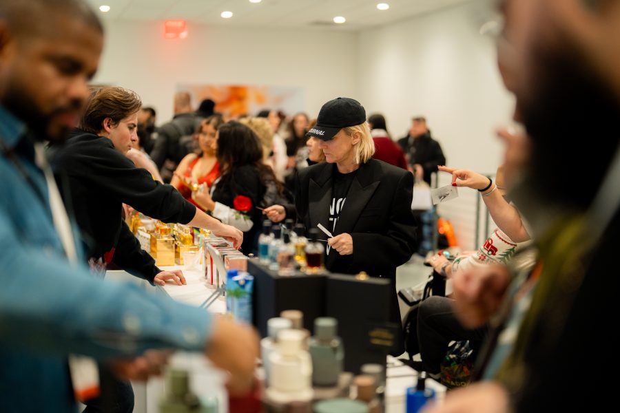 This year, dozens of brands, from Memo Paris to Commodity to Olfactive Studio, exhibited at the event, setting up booths, some with interactive displays. Representatives made themselves available to answer questions about scent profile and sillage, and bottles lined the shelves for unrestricted spritzing. For a fragrance lover, it’s a dream come true. In a world where most people don’t have access to niche counters and must resort to ordering samples online, it is nothing short of miraculous. For many attendees, though, it’s more than a bit of olfactive enjoyment – it’s a networking event.