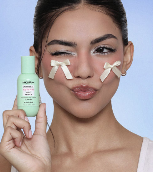 On the flip side, if you do not want to look like a glazed donut and prefer a matte finish when it comes to your makeup, especially in the sweltering summer heat, then you can and should rock Moira’s 16 HR Seal Mattifying Glue Primer. It serves two purposes effectively: a shine-free finish and your makeup doesn’t migrate. Packaged in a “shelfie” friendly and squeezable mint green tube with a tip for ease of application, it holds on tight to skin without feeling heavy, sticky, or tacky.. Apply a thin layer BEFORE makeup to banish shine and mattify skin, and to create a canvas for makeup to stay put. Which, as mentioned, is essential when it’s 95 degrees and humid. If you want a no-shine look, this primer is your new BFF.