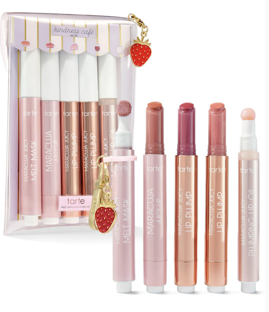 If you have a lip gloss-lover in your life, they are likely already coveting this five-piece collection of tarte‘s best-selling and clickable maracuja juicy lip pens, which add the perfect amount of moisture and shine to the pout. The are five desert-scented lippies (pink s’mores; mauvey coconut cream pie; berry’ish strawberry shortcake; taupe apple crisp; and crystalize sugar cookie) for the price of three, packaged in a plastic pouch that can be repurposed for things like hair accessories or spare change, complete with a strawberry charm keychain. Their lips will love you if you gift this.