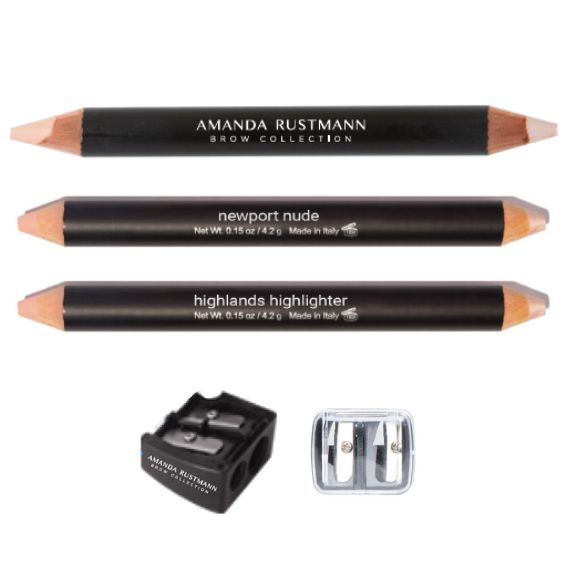 To elevate the look further – whether bleached, barely there, or just softened – my newly launched Amanda Rustmann Airplane Mode Highlighter Duo, a double-ended pencil with both matte and shimmer finishes, Use it to highlight the brow bone, or even as a subtle foundation alternative around the brows to make them appear lighter and more lifted.” Available in Highlands Highlighter (for lighter skin tones) and Newport Nude (for deeper tones), it’s a versatile way to spotlight this trend without the full chemical commitment.