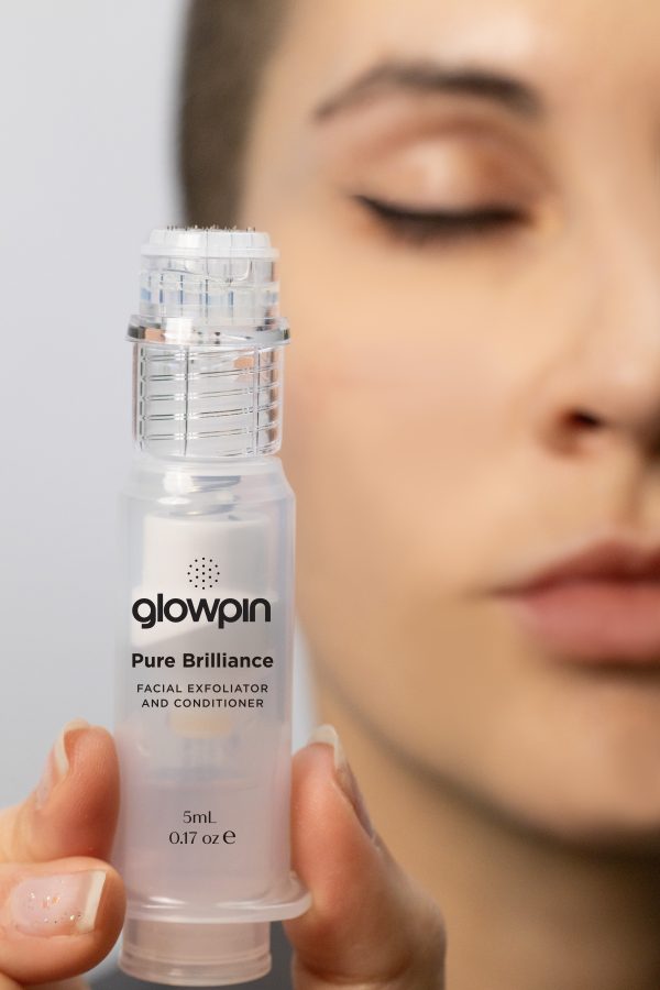 To maintain my skin’s fresh, radiant look,  I apply the kit’s Glass Skin Brightening Serum consistently between monthly Glowpin Stamper treatments.