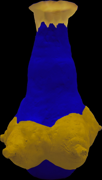 Fran Flaherty, founder of Anthropology of Motherhood, presents two petite sculptures inspired by the Filipino Masuso pot. Known for her extensive sculptural work with human breast milk encased in resin and organizing with the Not-White Collective, Flaherty’s recent exploration involves research-inspired renderings of an enigmatic, ancient earthenware vessel named for the Tagalog word suso, meaning breast. Featuring multiple breast-like protrusions, typically seven, the Masuso pots’ exact cultural origins and purpose remain unknown. Believed to be used in sacred rituals symbolizing fertility and nourishment, several pieces are included in the National Museum of the Philippines’ permanent collection.