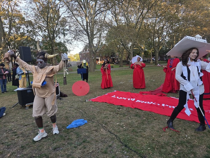Jodie Lyn-Kee-Chow is an American interdisciplinary artist and SVA faculty member best known for her work in performance art. For the Evening Star exhibition, Lyn-Kee-Chow is showcasing collected video footage and memorabilia from her ongoing work Junkanooaacome. Intended to decolonize and raise awareness of NYC’s historic spaces and monuments still bearing names of slave masters, Junkanoo is a centuries-old ritual art form based on celebrating freedom brought to life by Jodie in a series of interdisciplinary and interactive workshops, performances and other media. Traditionally, a pre-abolition satirical masquerade and decolonization satirical ceremony confronting slave-masters and practiced during Christmas in parts of the Caribbean, Junkanoo celebrations typically involve parading with ornate costumes including grand hats replicating houseboat mansions, while others entail colorful characters engaging in miming, drumming and dancing. An age-old performance of freedom, Junkanoo is named in honor of the 18th-century Akan warrior, Jon Konny, who defended his native Prince’s Town (present-day Ghana) from the Dutch colonizers for over twenty years.