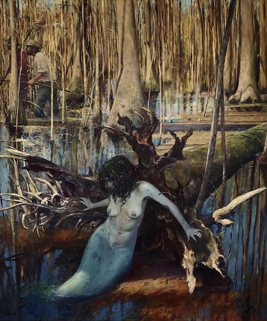 I generally paint in oils. My work is landscape-based, representational, but with a lot of unusual (for a painter) forays into American legends and forgotten history.