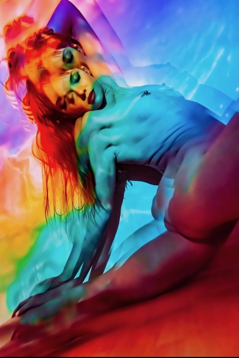 The exhibition culminates in monumental titanium dye sublimation works in which the feminine presence expands into something mythic, echoing ancient archetypes of renewal and transformation.