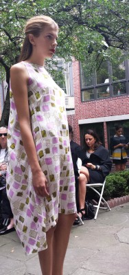 For Spring 2014 fashion week, YEOHLEE put on a show like I’ve never experienced. Held in the backyard Jones Wood Garden, from where her collection was inspired, the show was serene, peaceful, and surprisingly quiet. The crowd was kept minimal and YeohLee herself escorted many of the guests to their seats along the garden’s stone path. With meditative music playing as the models walked through the garden, the entire surrounding couldn’t have represented the collection any better. Ranging from structured dresses in pale pink and ivory, vibrant green jackets, and tonal grey jersey dresses and tunics, it was obvious both the color palette and fabrics were carefully selected to represent the outdoors natural allure.