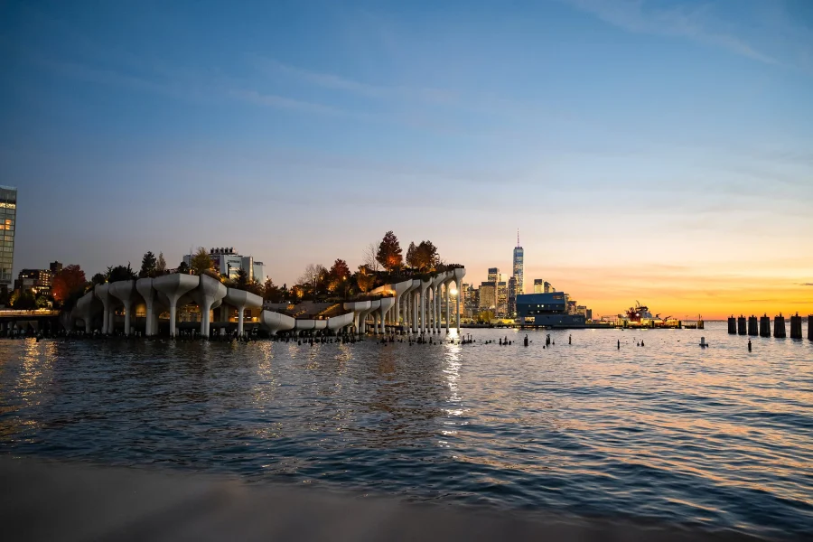 El Bar at Pier 57 in Chelsea next to the Little Island is an ideal place for a party or intimate date because the location is unique, the cocktails are inspired, the bartenders are super-friendly, the view of the Hudson River at night dazzles, and the atmosphere is ultra-comfortable-yet-upscale.