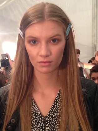 The hair and makeup designs at Vivienne Tam were a perfect match for the chilled-out vibe. Skipping elaborate updos and tricky styling, the TRESemmé team, led by stylist Jeanie Syfu, left hair down and sprayed roots with dry shampoo for a matte effect (imagine that—avoiding shine!).