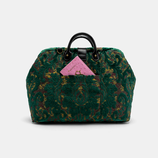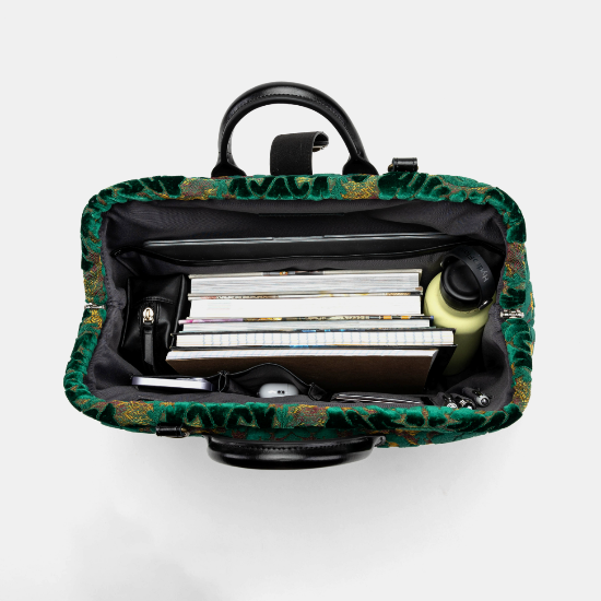 In love with the style, but not the color? The jade green material that adorns this particular bag comes from one of the company’s newest collections, a series of burnout velvet revival fabrics that look like something straight out of the haunted mansion. In short, the perfect choice for spooky season. And, for those who would prefer something different altogether, there are plenty of other fabrics, from vintage florals to Halloween-inspired prints, to discover.