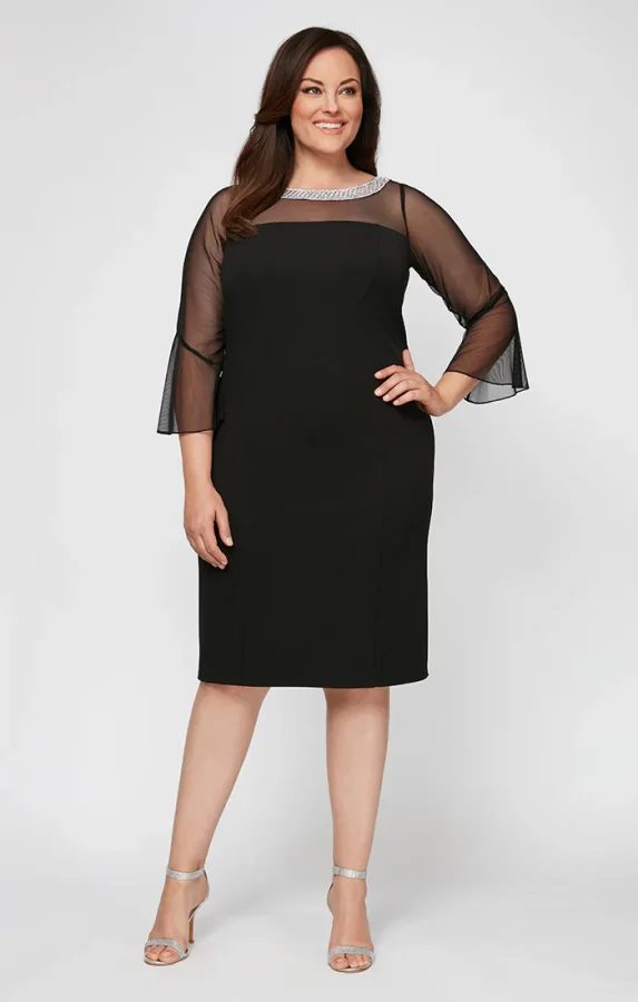 One dress that really stands out this season is the Olivia Illusion Neck Crepe Dress (in black), a short sheath crepe cocktail dress with beaded illusion neckline and bell sleeves; one of those pieces that instantly looks special without trying too hard.