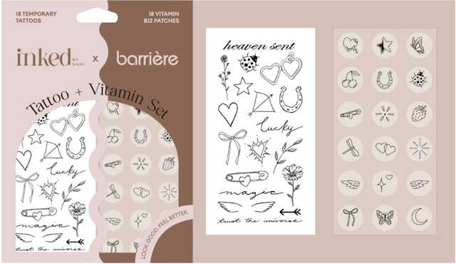 Barriere is the go-to for traveling with vitamin supplements, making it super easy to keep up your immunity and energy. Just stick on the patches of your choice and forget about it. Enjoy feeling great and knowing that you are protected during your trip. This year give the gift of energy with Vitamin B12 temporary tattoos by Barriere and INKED by Dani, known for its viral hand-drawn temporary tattoos. This collaboration blends self-care and creative expression, including 18 B12 Energy Boost patches printed with Dani’s hand-drawn tattoo art, plus 18 matching temporary tattoos. Find it here.