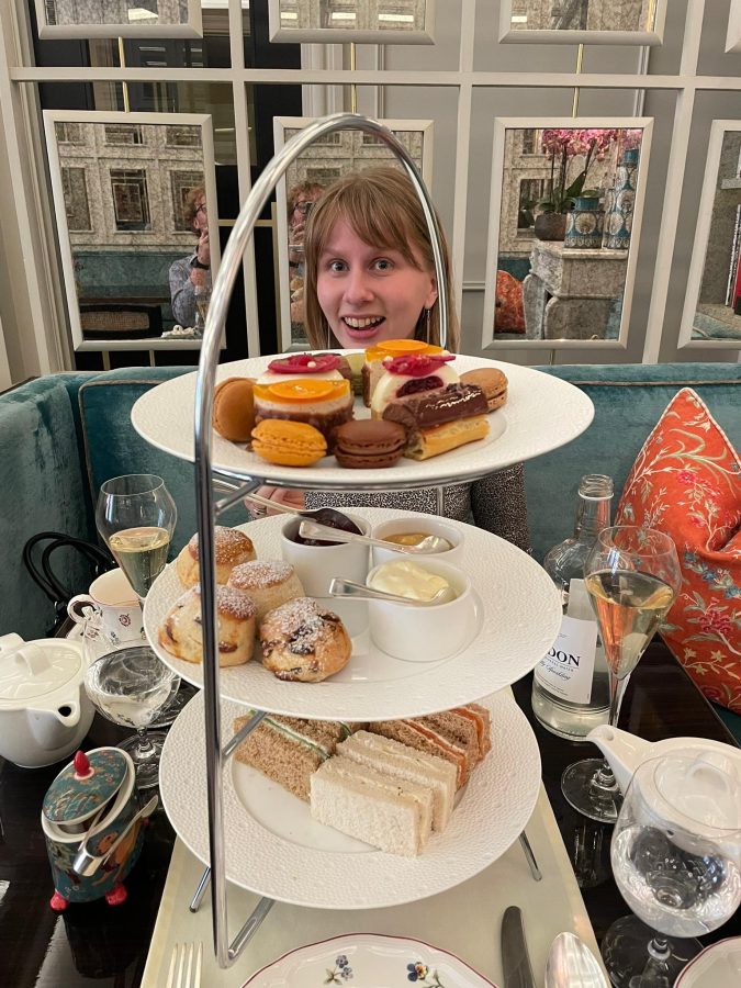 For the uninitiated, I should explained that in England ‘afternoon tea’ is not just the cuppa your nan makes you on a Saturday visit—it’s an institution. It’s a three-course experience, balancing champagne and darjeeling with perfect poise. The giant tower of delightful finger foods you see poised before me, and the glimmer of excitement in my eyes. It’s London, darling!