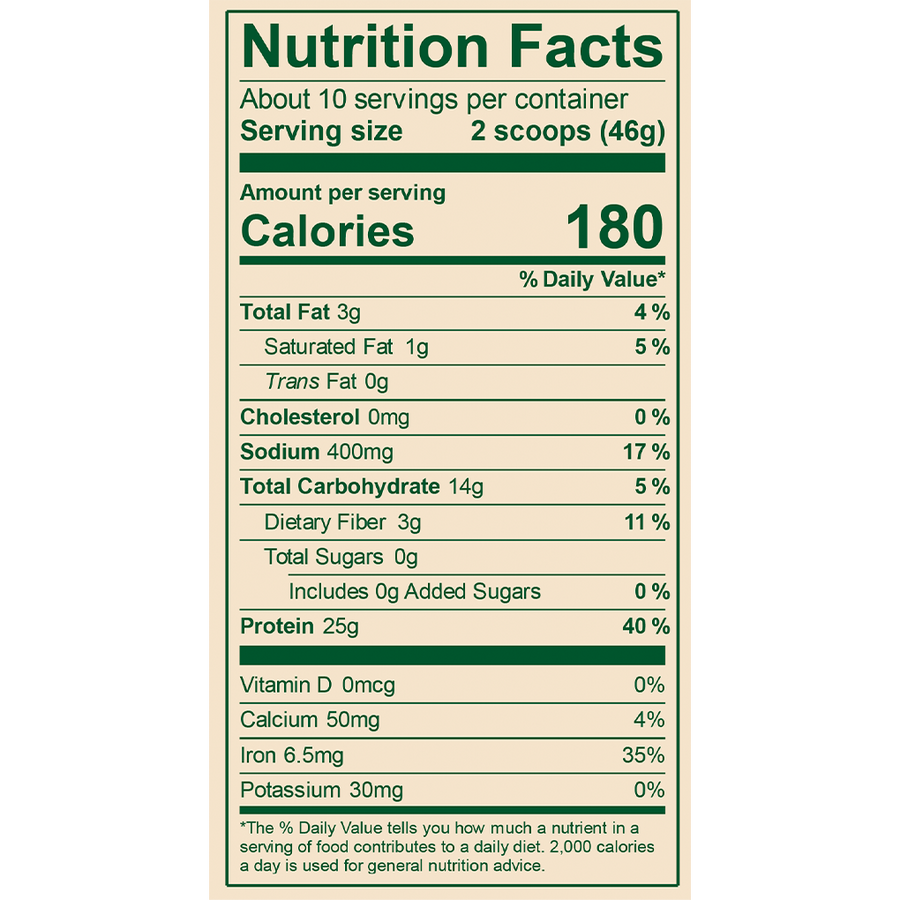 Vega’s original plant-based protein powder comes in two flavours – Creamy Chocolate and Creamy Vanilla. Each serving is 25 grams of protein exclusively from peas, has 0 grams of sugar, 3 grams of fiber from acacia gum and 1.7 grams of amino acid. Rosemary extract is also added as a natural preservative.