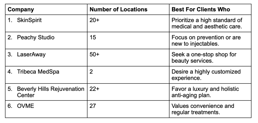 Specialization: Med spas that provide customized treatment plans based on client goals were prioritized.