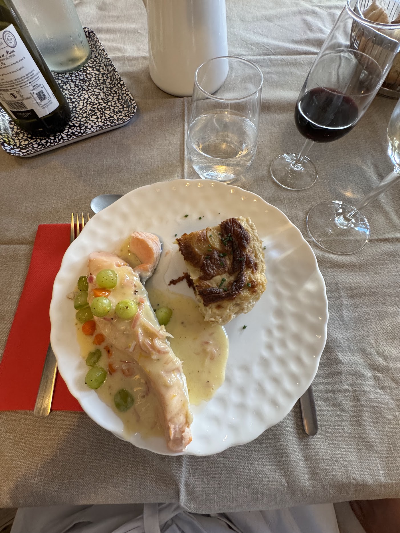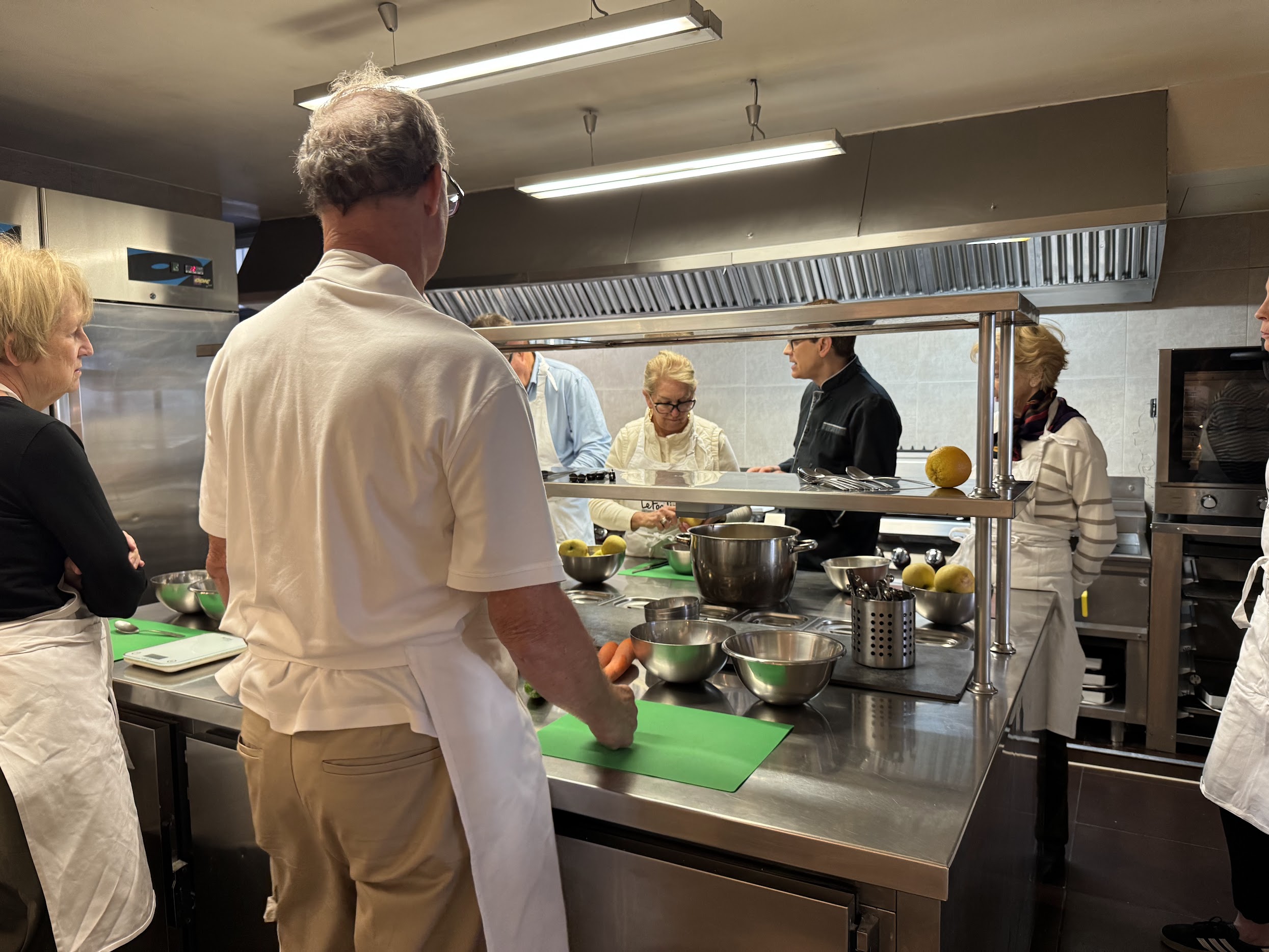 After a few hours of chopping, stirring, and plating, we enjoyed our meal with some wine in the charming dining room. As we savored perfectly baked salmon and caramelized apples, Frederic quizzed us on what was considered the holiest protein in the Middle Ages. (The answer: birds—because they can fly, they’re closer to heaven.) He also shared how his grandmother often made cooked cucumber when he was growing up in the south of France.