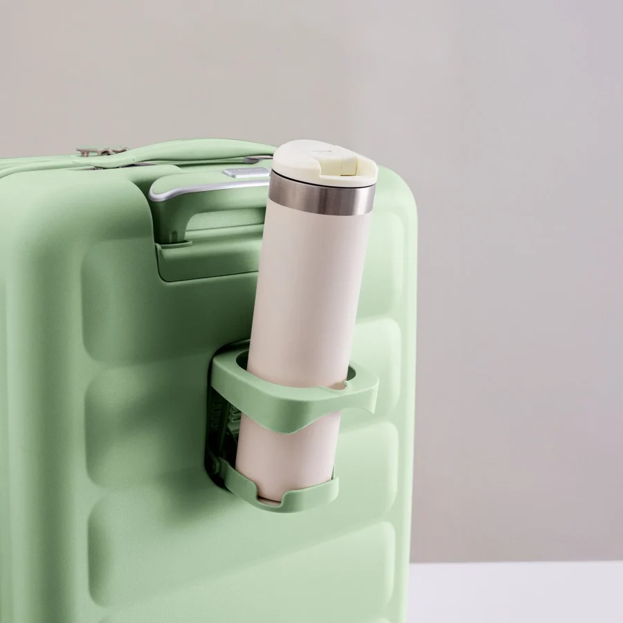 What stands out pretty quickly is how easy it is to handle. The spinner wheels glide smoothly, even when the bag is fully packed, and the handle feels sturdy without being bulky. There’s also a built-in cupholder for those harried or rushed moments when you’re juggling your passport, phone and coffee at the gate.